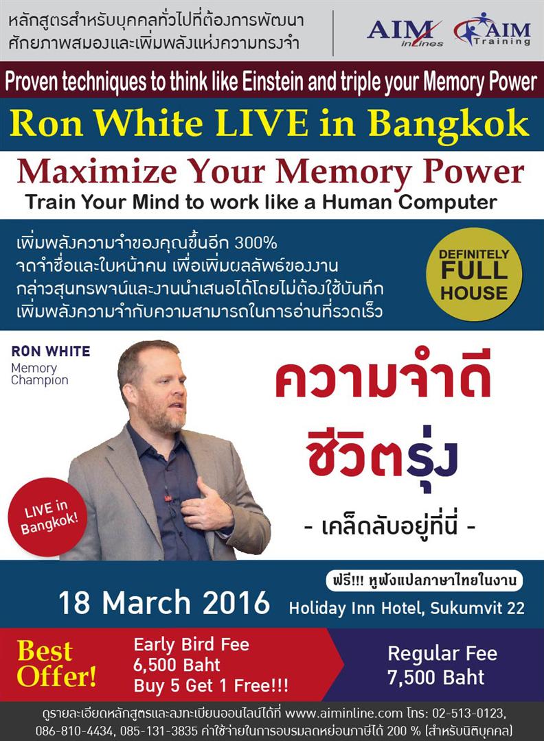 1. 3. หลักสูตรการเรียนด้านความจำออนไลน์ กับ Ron White (Memory Champion) ตลอดชีวิต มูลค่า 19,200 บาท