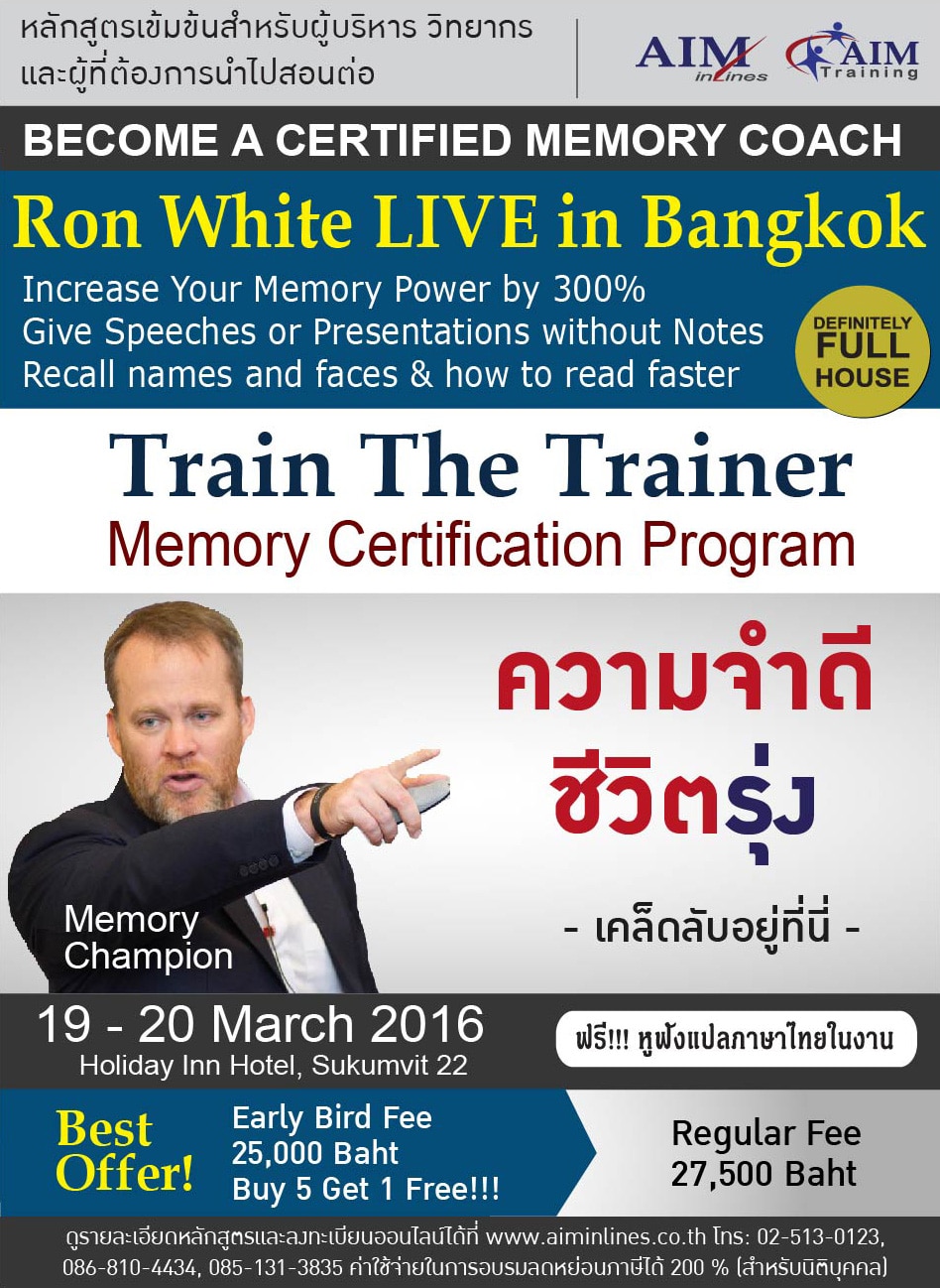 สำหรับ 10 คนแรกที่สมัครหลักสูตร Train The Trainer – Memory Certification Program