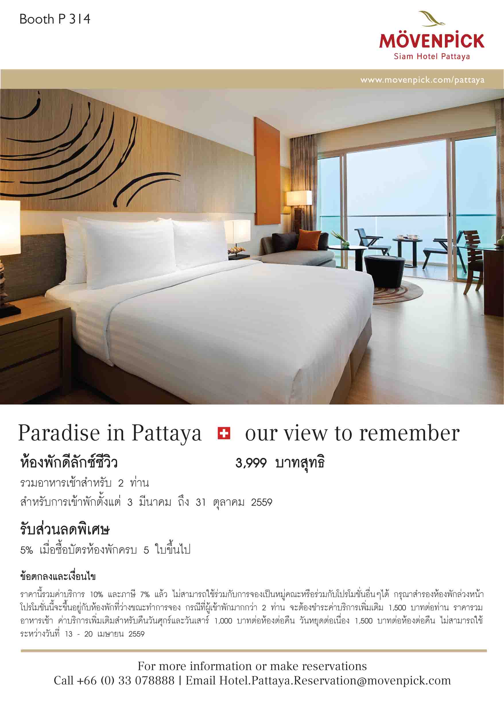 Movenpick Siam Hotel Pattaya ที่พึ่งเปิดให้บริการไปเมื่อช่วงปลายปีที่ผ่านมา