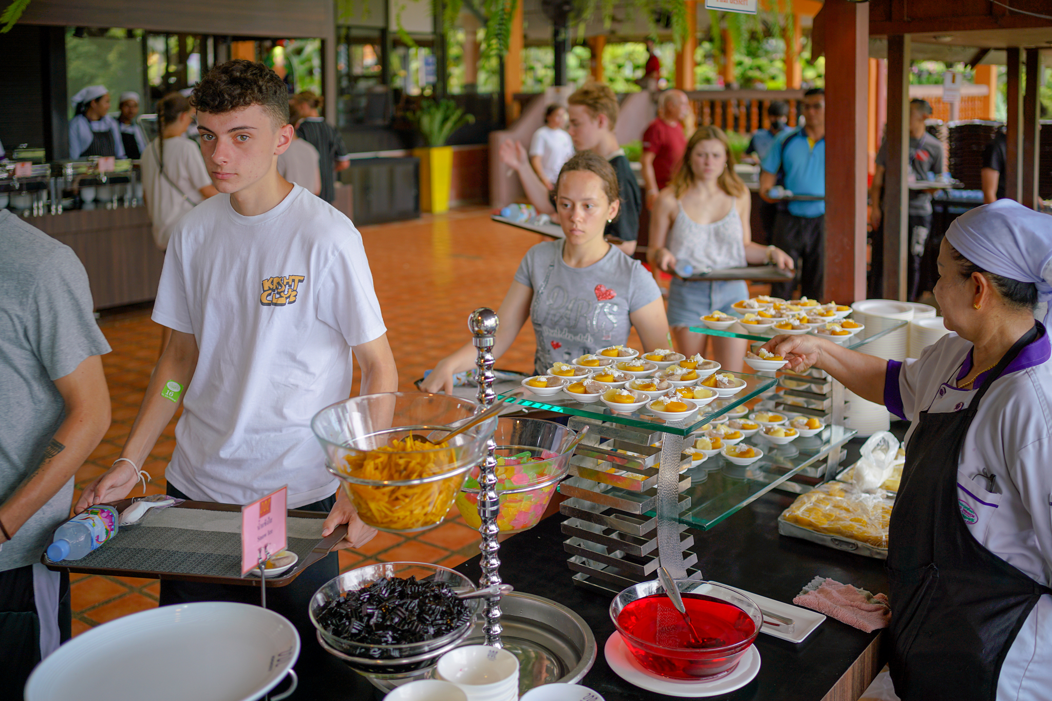 เพลิดเพลินกับการแสดงสดสุดตื่นตาตื่นใจ ทั้งการแสดงมวยไทยโชว์ลีลาเข้มข้น การแสดงช้างแสนรู้แสนน่ารัก ไปจนถึงการรำไทยพร้อมเครื่องแต่งกายหลากสีและดนตรีแบบไทยแท้ เพิ่มความฟินด้วยแพ็กเกจอัปเกรดที่มาพร้อมบุฟเฟ่ต์มื้อกลางวัน อาหารไทยสุดอร่อยให้คุณอิ่มแบบจัดเต็ม