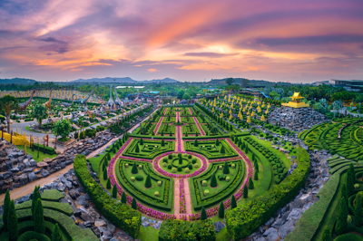 สัมผัสมนต์เสน่ห์ของ “สวนนงนุช พัทยา” สวรรค์แห่งการท่องเที่ยวเชิงธรรมชาติและวัฒนธรรมในพัทยา เดินชมสวนดอกไม้สวยหลากธีม ตั้งแต่เจดีย์ทองอร่ามในโซน French Garden, ดอกไม้แสนสดใสในสวน Bromeliad Display Garden, สวนฟลามิงโกที่เต็มไปด้วยนกสีชมพูสดใส ไปจนถึงสวนบอนไซที่สง่างามและเต็มไปด้วยเสน่ห์แบบญี่ปุ่น